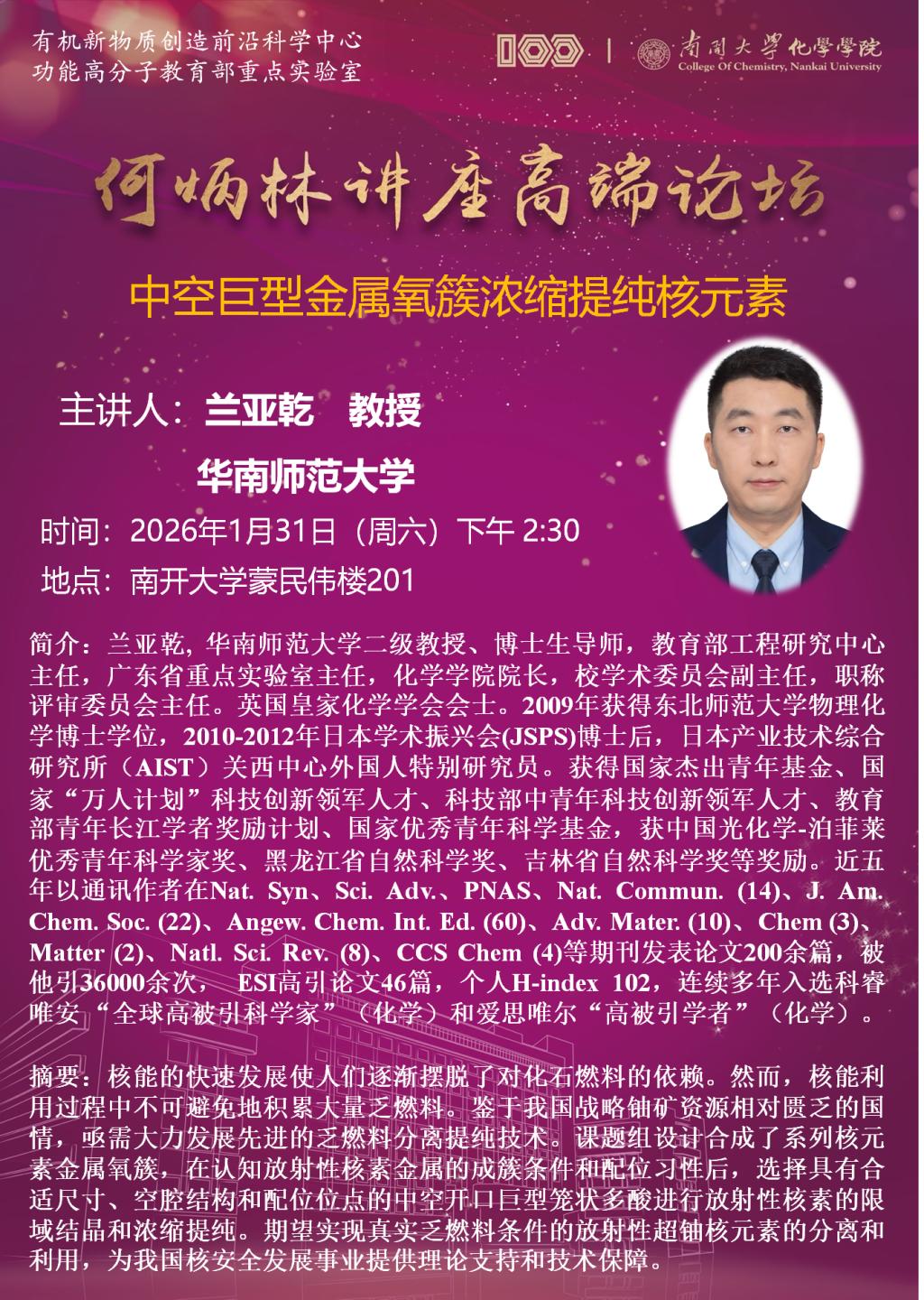【何炳林讲座高端论坛】| 中空巨型金属氧簇浓缩提纯核元素