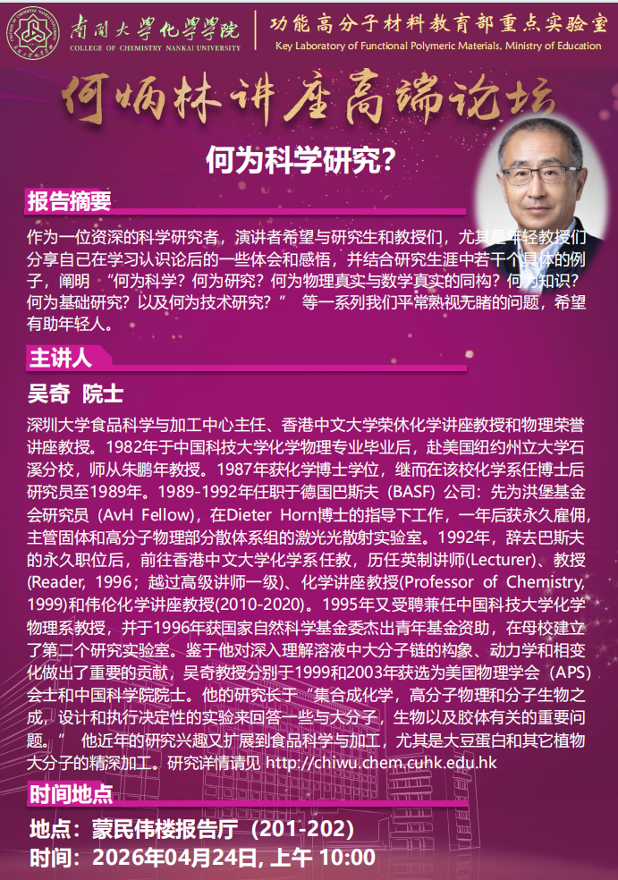 【何炳林讲座高端论坛】| 纳米研究在生物医学、清洁能源与功能器件的应用