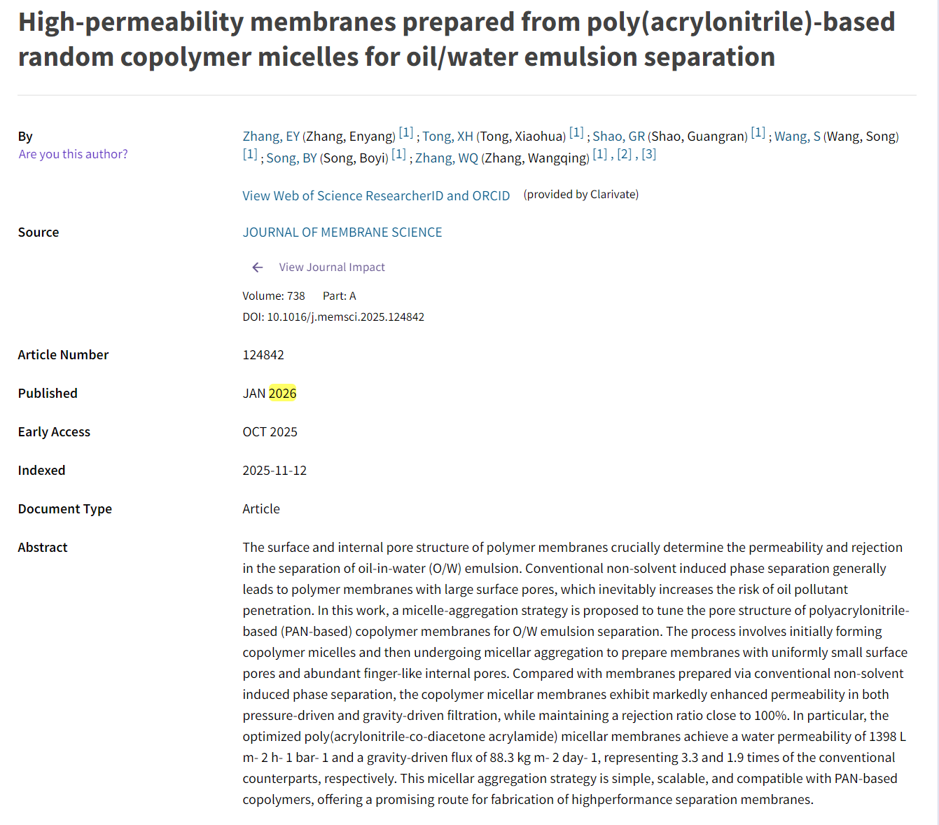 张望清课题组| JOURNAL OF MEMBRANE SCIENCE
