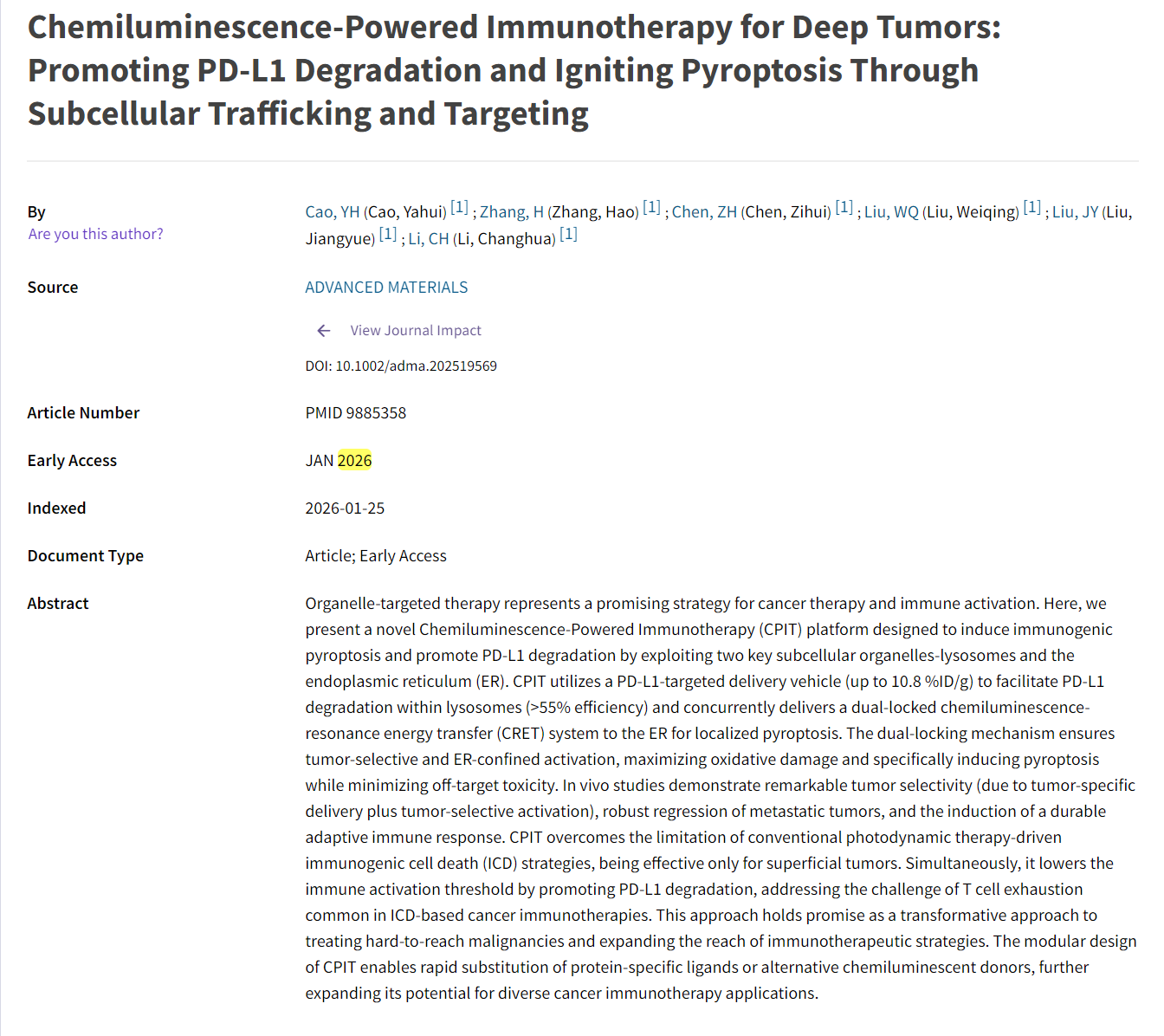 李昌华课题组| ADVANCED MATERIALS