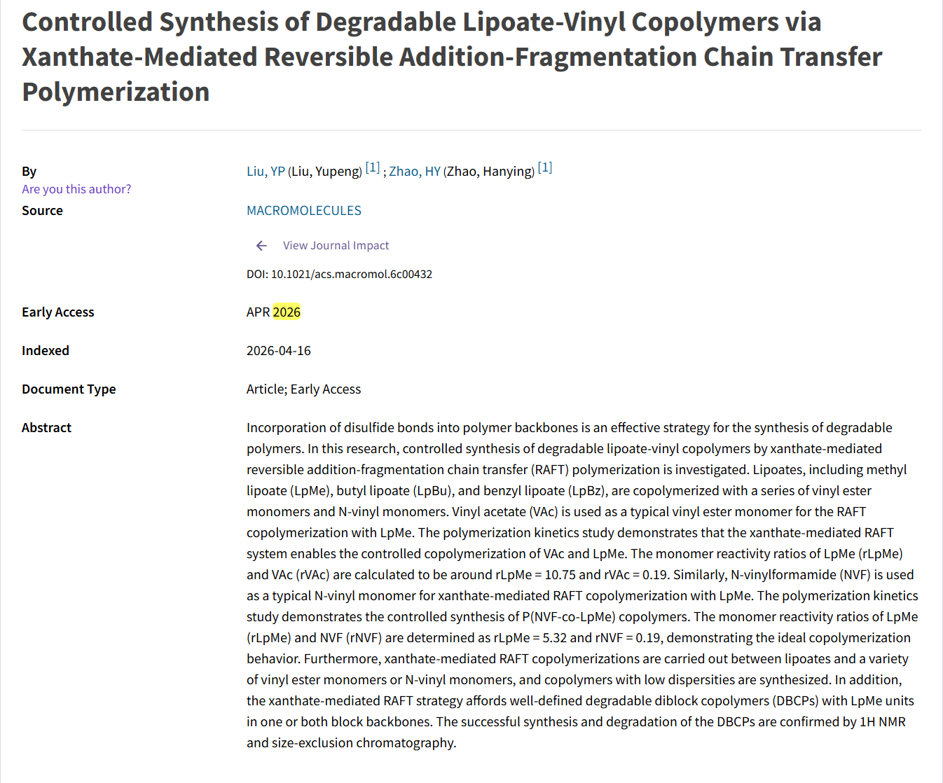 赵汉英课题组| MACROMOLECULES